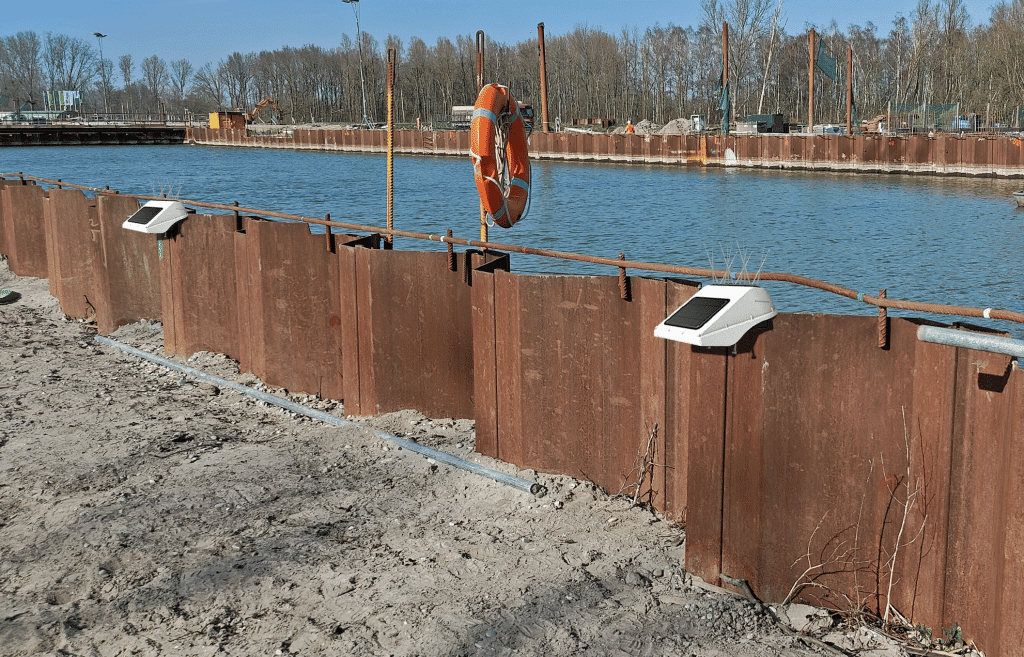 To automatically monitor the sheet piling, steel plates were installed at several locations, and the Locator Ones were mounted on them. The primary measurements focused on the horizontal plane, as the sheet piles are already deeply anchored in the subsurface and minimal subsidence was expected. With a horizontal measurement precision of 2 – 3 mm, the Locator One is ideally suited for monitoring these deformations.